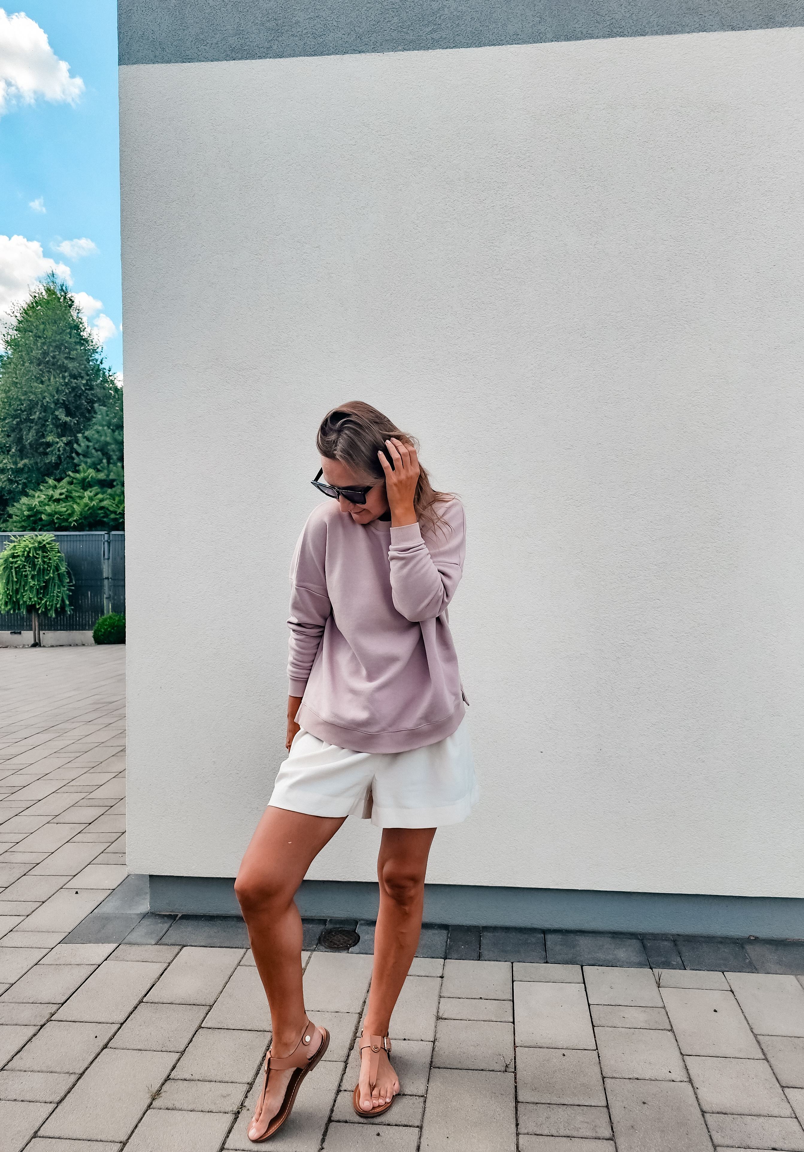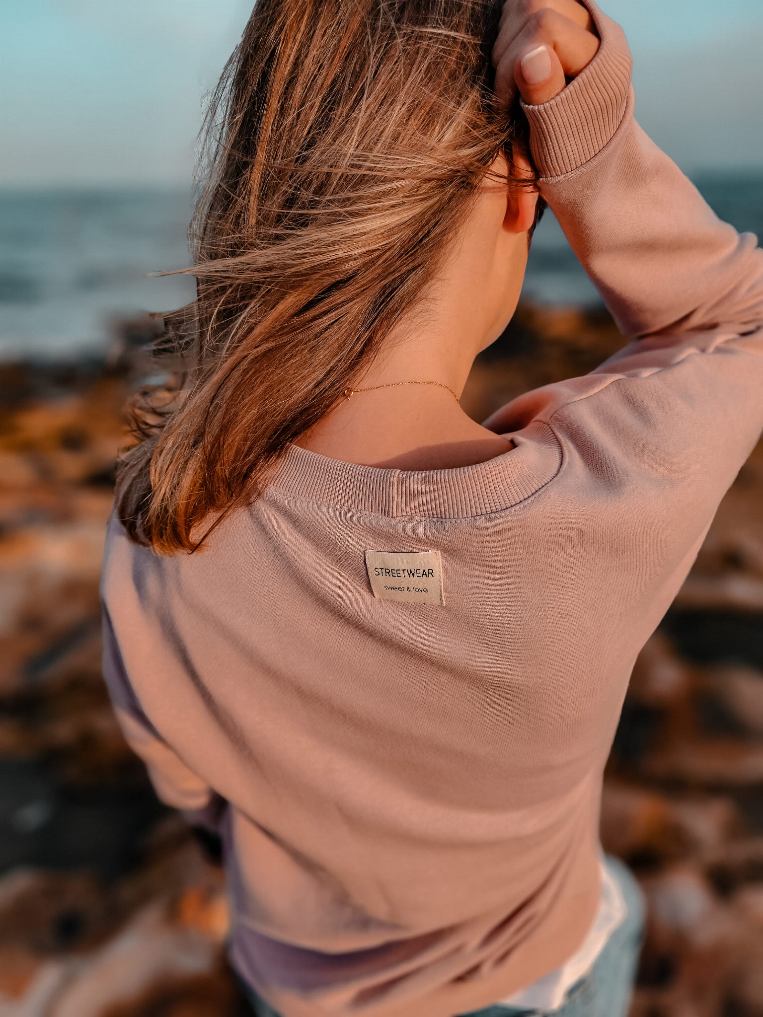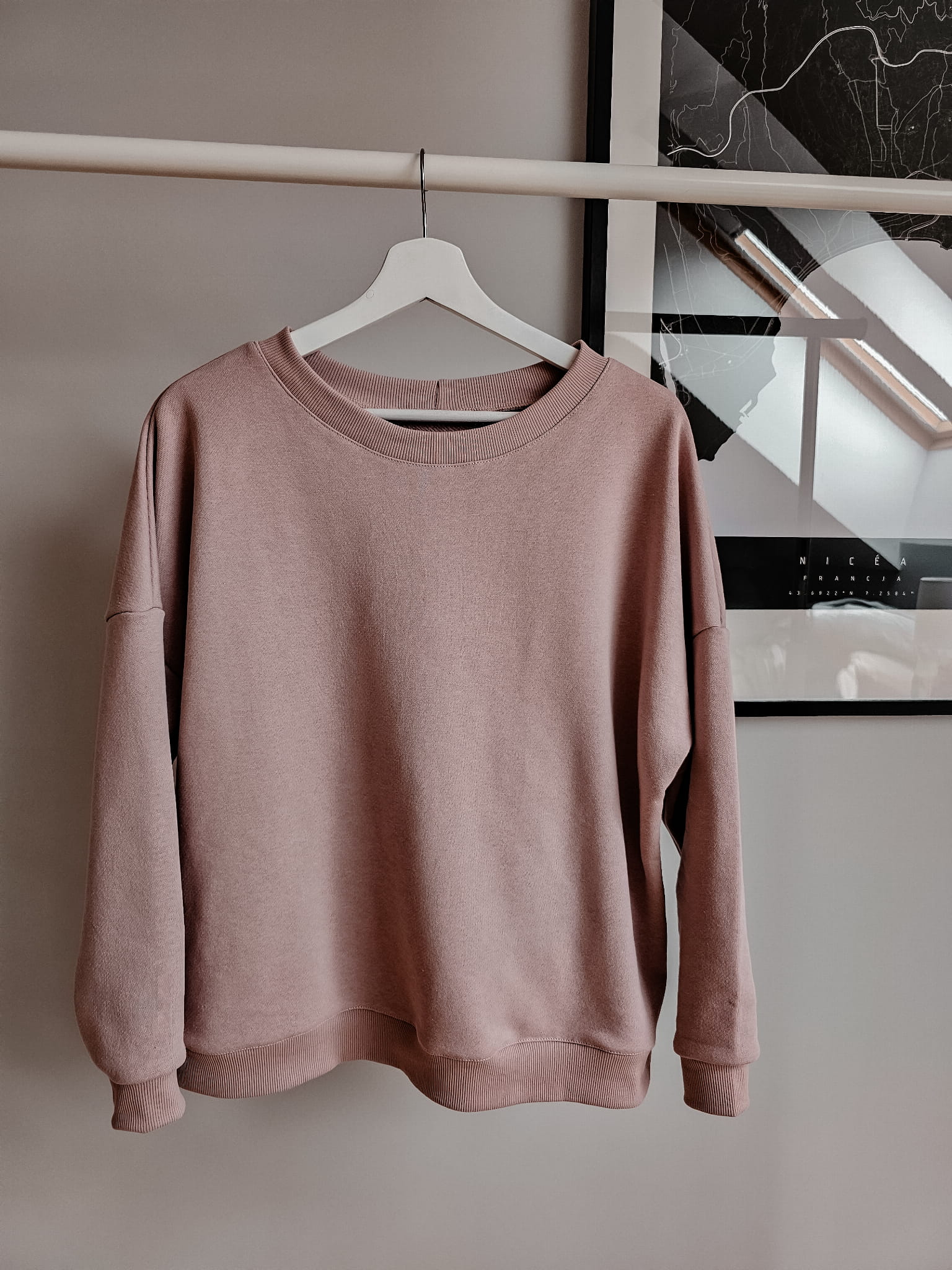 Bluza damska puder pink o prostym kroju, ale z lekkim twistem.