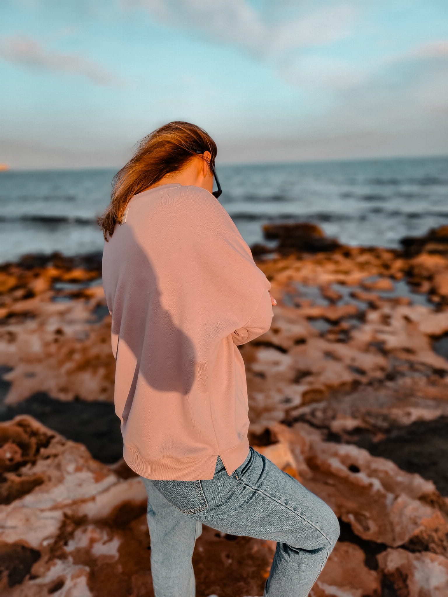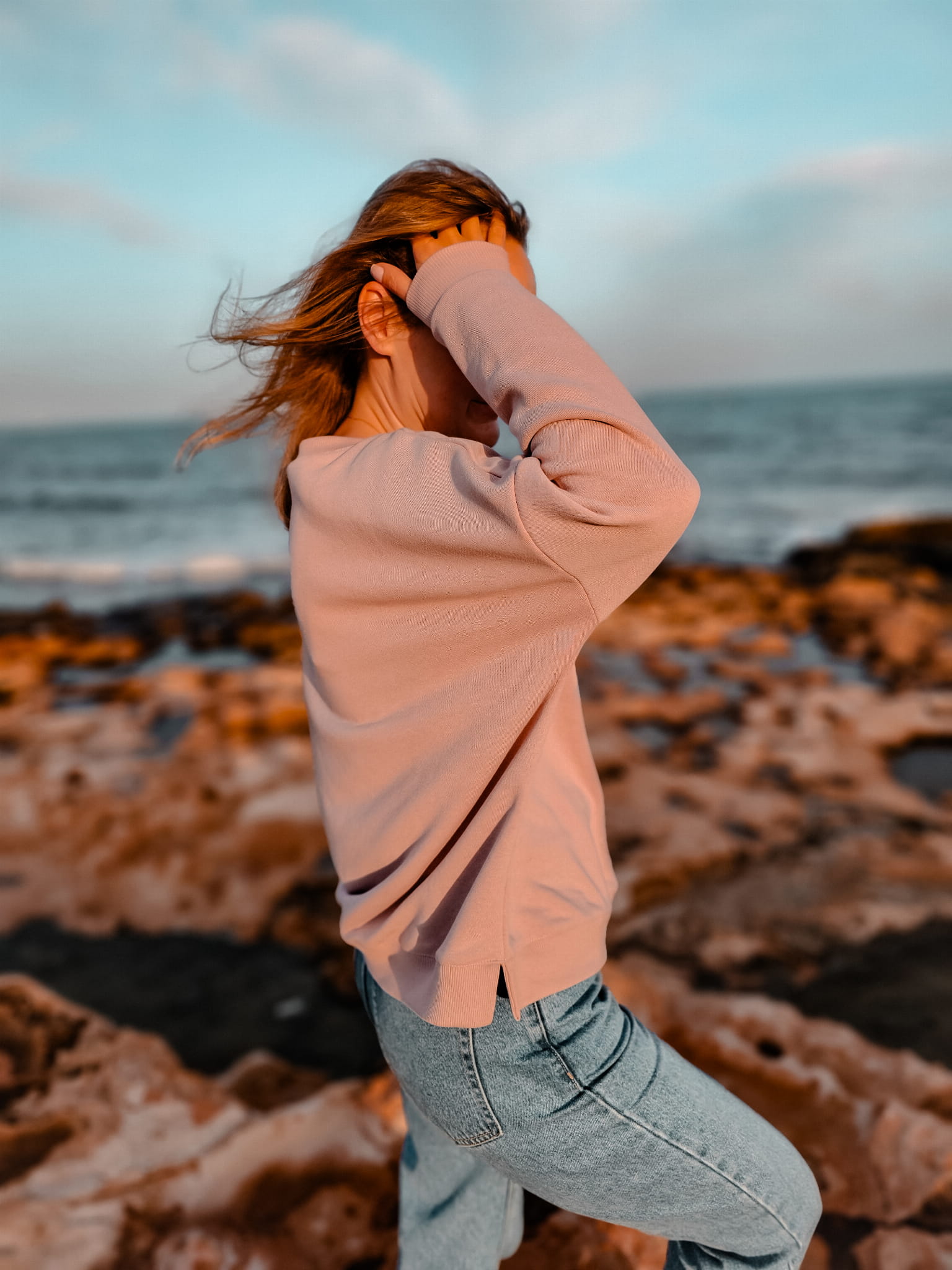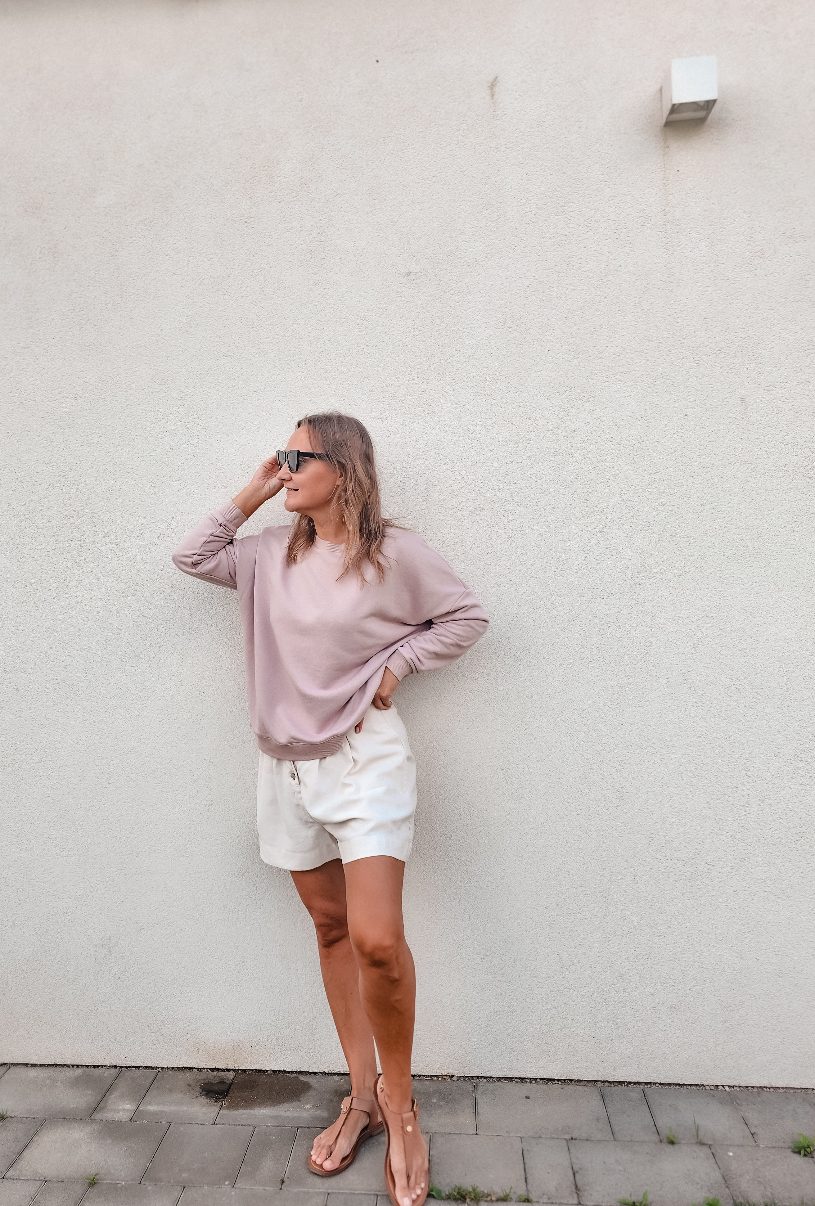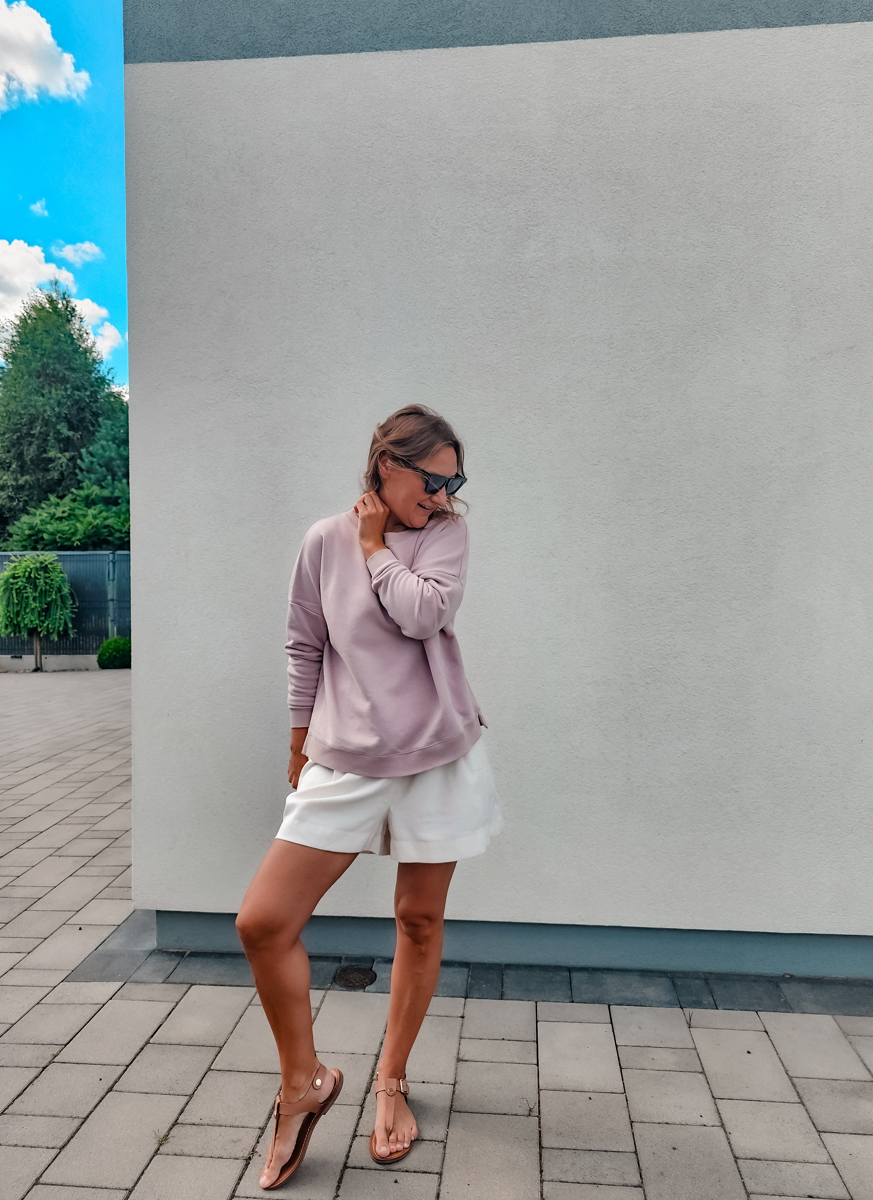 Bluza damska puder pink o prostym kroju, ale z lekkim twistem.
