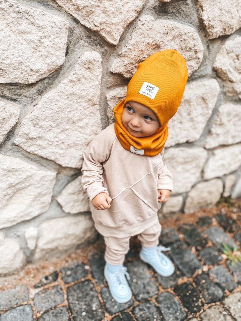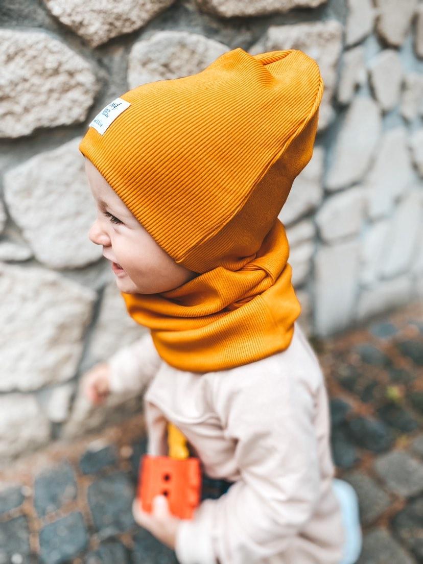 Czapka dwuwarstwowa uszyta z dzianiny typu ściagacz.