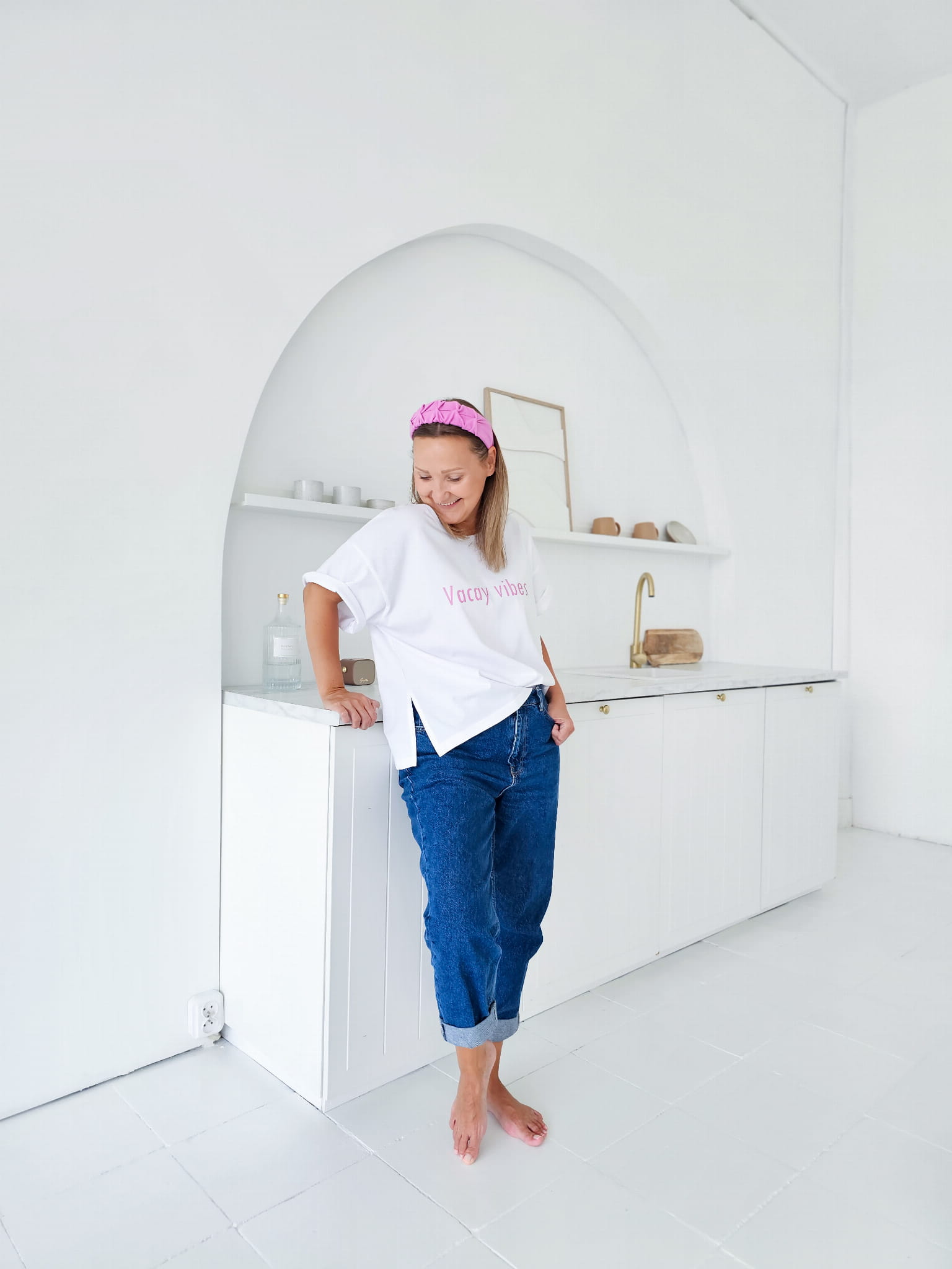 Koszulka z dużymi pęknięciami po bokach, dzieki czemu masz luz i swobodę.