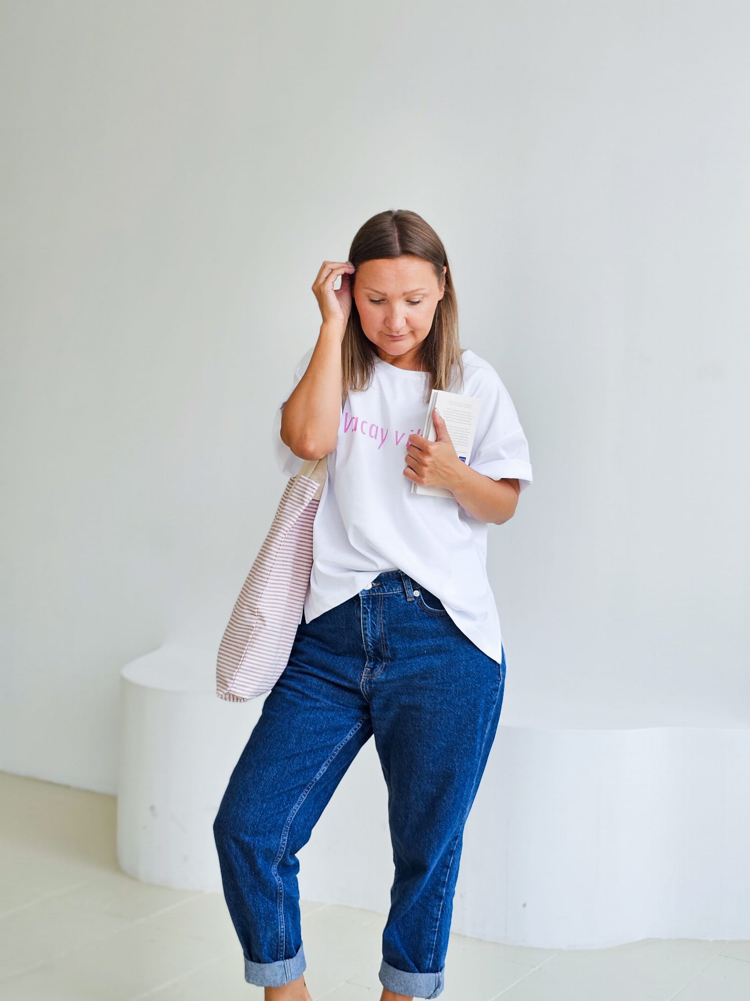 Rekaw prosty z możliwością podwinięcia, dzieki czemu koszulka zyskuje inną formę