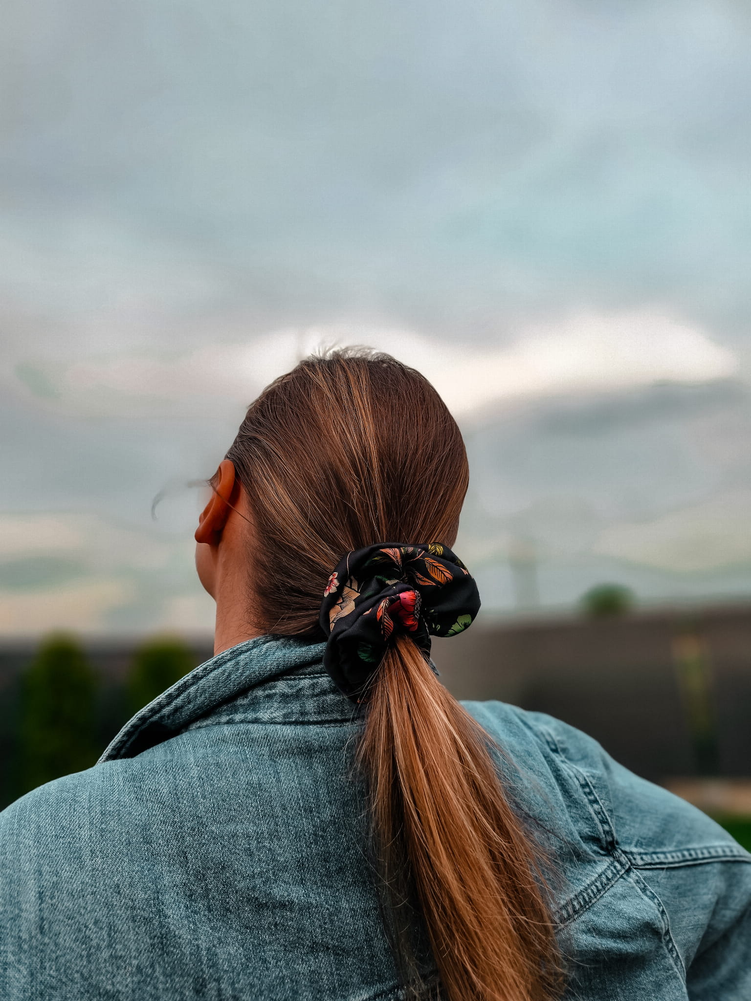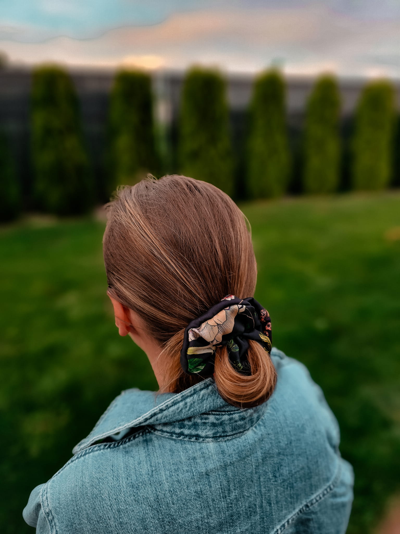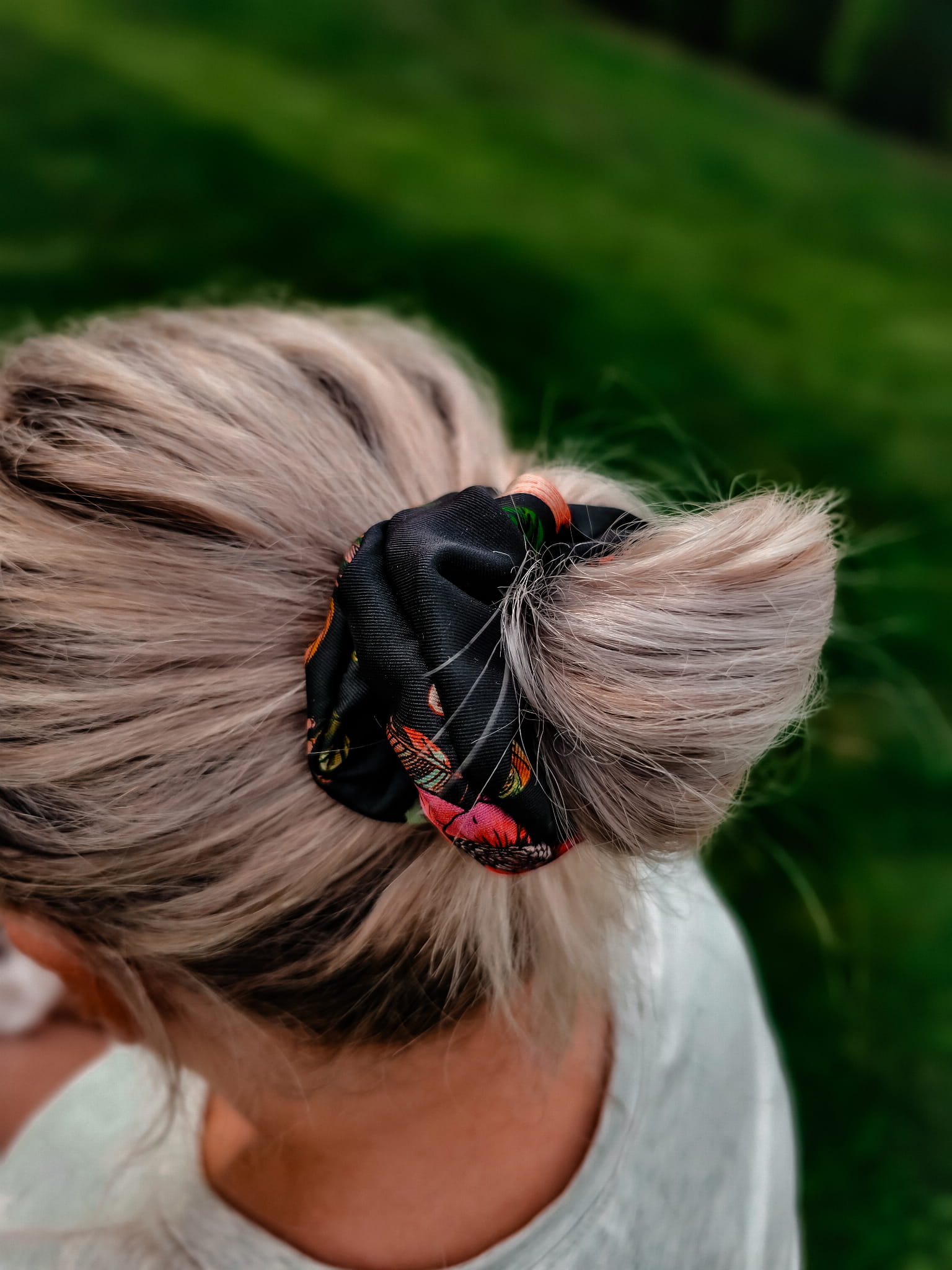 Gumka scrunchies czarna w kwiaty