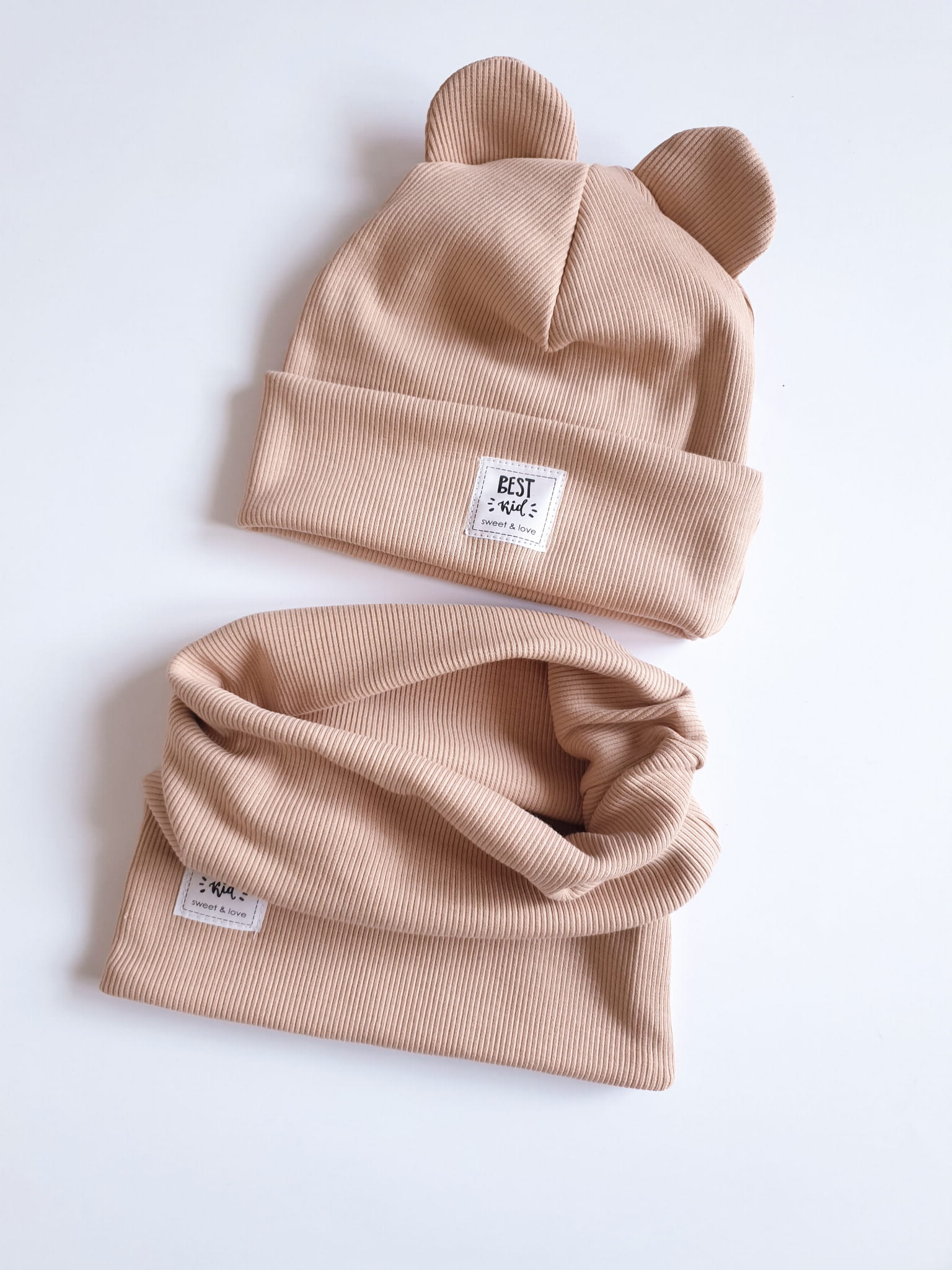 Czapka miś dwuwarstwowa z wywinieciem plus tuba dwuwarstwowa wkladana na raz przez głowę.