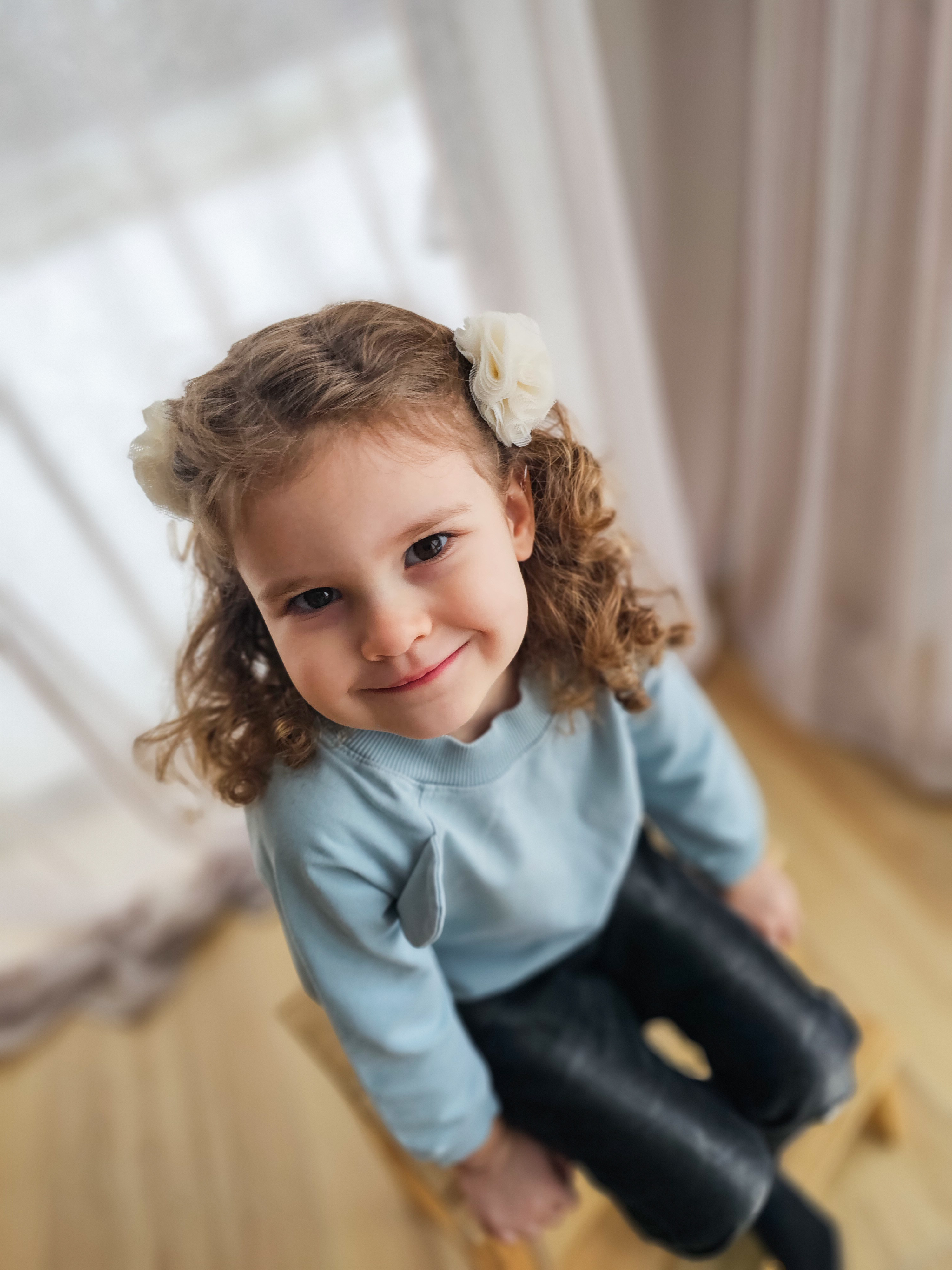 ● Kształt: Spinka ma formę trójwymiarowego kwiatka (różyczki), który wygląda bardzo lekko i puszysto.